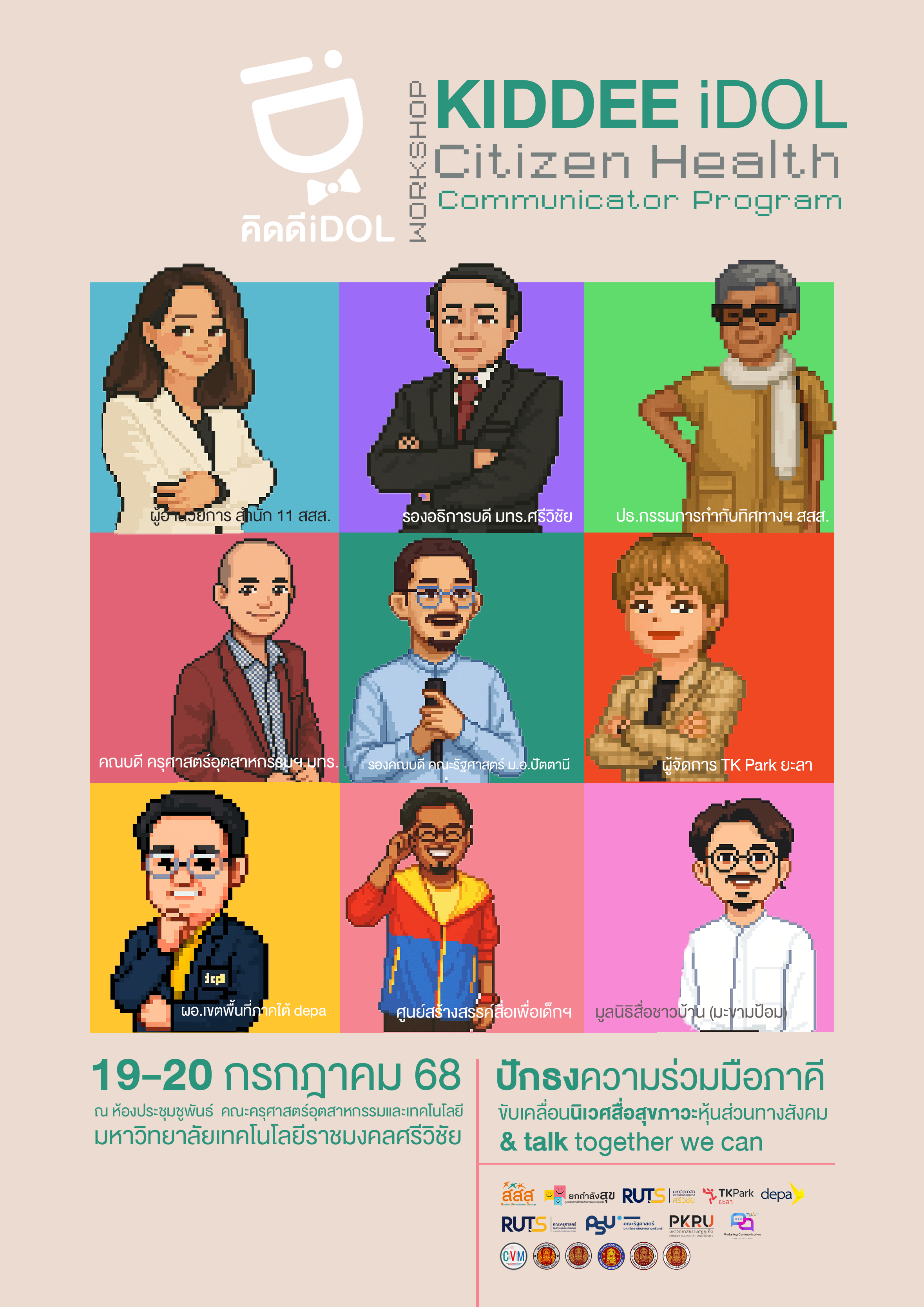สสส. โดยศูนย์สร้างสรรค์สื่อเพื่อเด็กฯ หรือสโมสรยกกำลังสุข ร่วมกับ มหาวิทยาลัยเทคโนโลยีราชมงคลศรีวิชัย และภาคี จัดเวทีปักธงและอบรมเชิงปฏิบัตการนักสื่อสารสุขภาวะ คิดดีไอดอล Citizen Health Communicator Program
