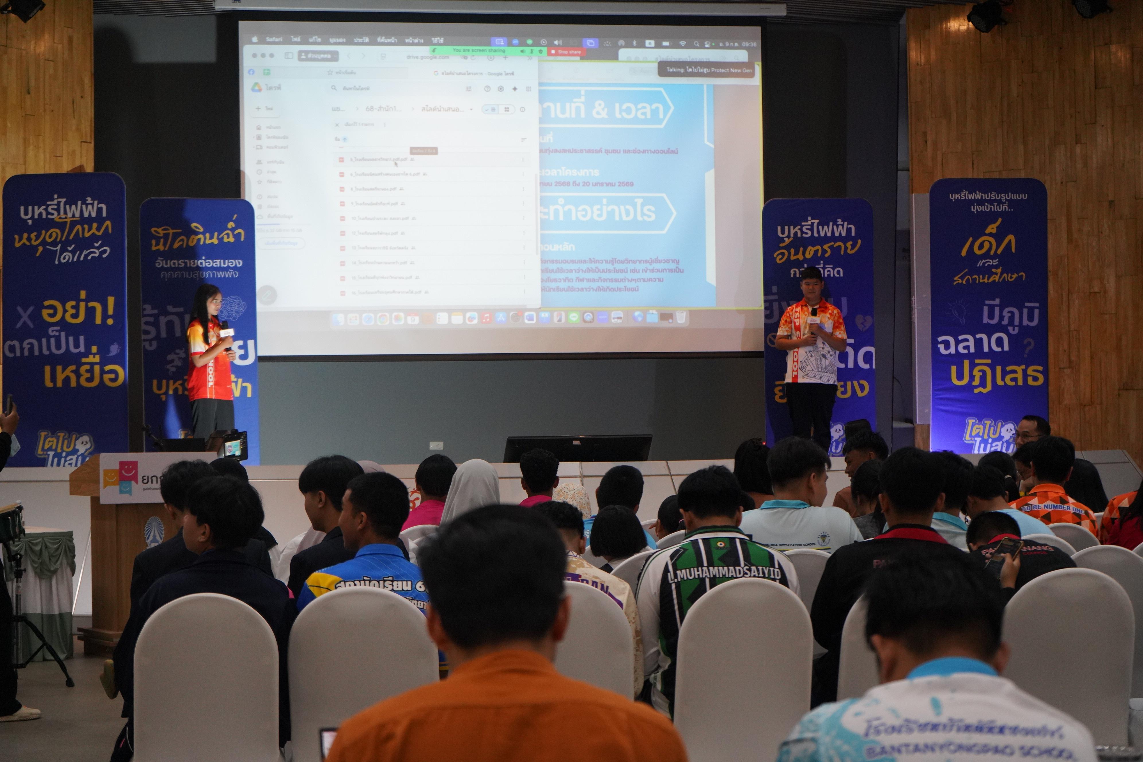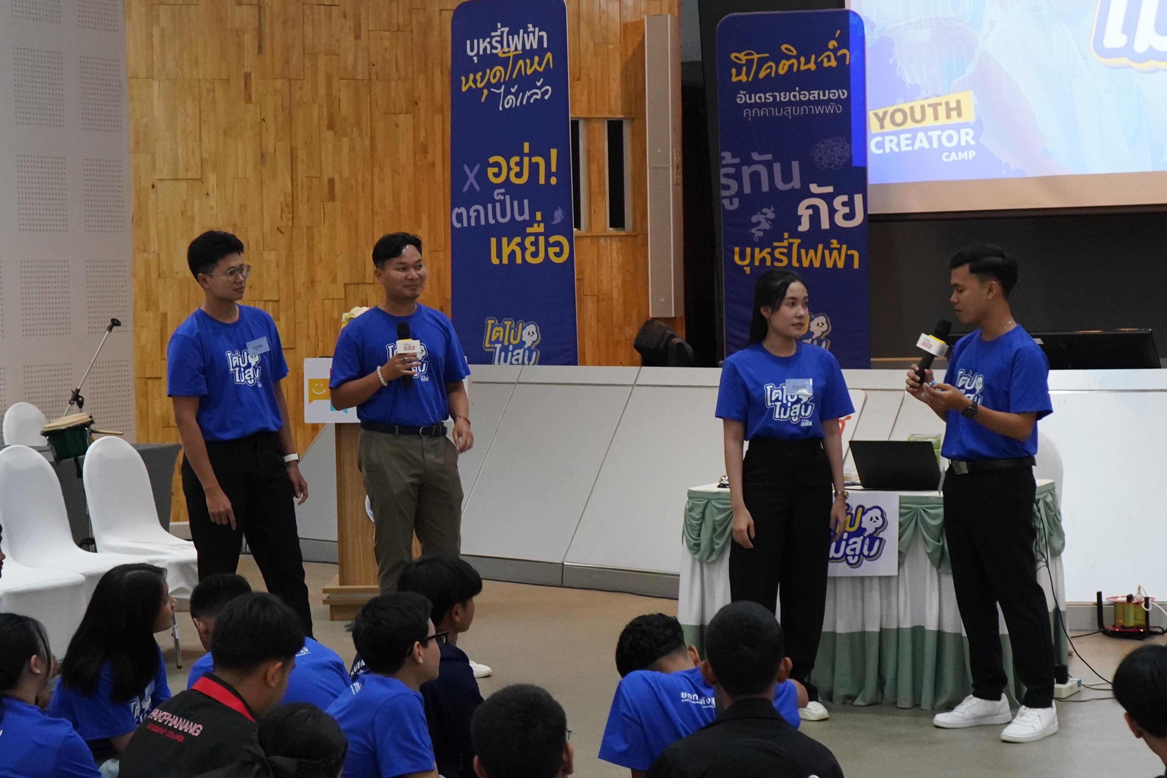 ค่ำวันเดียวกัน เวที Design Thinking Workshop เปิดโอกาสให้ทุกทีมลองออกแบบแคมเปญในโรงเรียนของตนเอง “นี่คือจุดที่หลายทีมเริ่มมองเห็นว่า การแก้ปัญหาไม่ใช่แค่การห้าม แต่ต้องสร้างพื้นที่สร้างสรรค์ให้เพื่อน ๆ เลือกสิ่งที่ดีกว่า” เยาวชนจากจังหวัดนครศรีธรรมราชสะท้อน