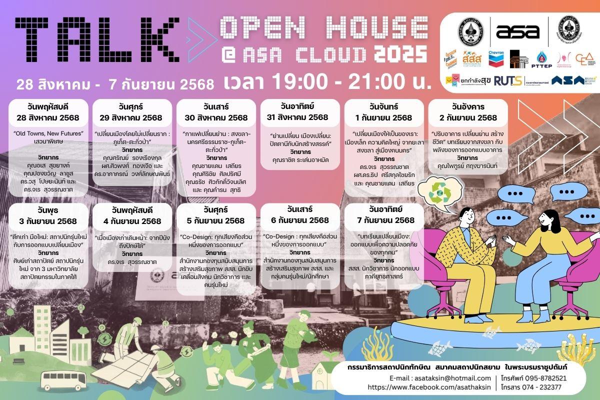 สงขลา – เทศกาล SOUTH PARADISE 2025 กลับมาอีกครั้ง กรรมาธิการสถาปนิกทักษิณ สมาคมสถาปนิกสยาม ในพระบรมราชูปถัมภ์ เปิดพื้นที่ให้สถาปนิก นักออกแบบ เยาวชน และคนในชุมชน ได้มาร่วมกันออกแบบเมืองในแบบที่เราอยากอยู่ OPEN HOUSE @ ASA CLOUD 2025 ระหว่าง 28 สิงหาคม – 7 กันยายน 2568 ณ ศูนย์อาษาคลาวด์ เมืองเก่าสงขลา